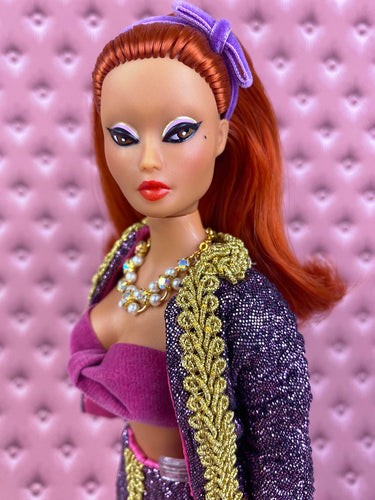 "Gilded Gadabout in Metallic Lilac" - OOAK Doll