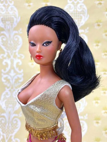 "Fabiola Flounce in Black" - OOAK Doll